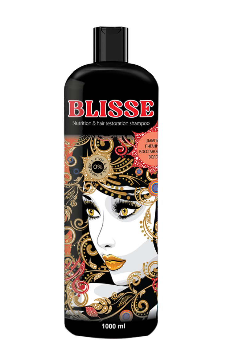 BLISSE - шампунь для волос (питание и восстановление). Шампунь ухаживает за кожей головы и рекомендован для ежедневного использования. Он придает мягкость и блеск волос. Ультрамягкая моющая основа позволяет использовать его всем членам семьи каждый день. Ph нейтральный. Способ применения: нанесите на влажные волосы, вспеньте, сполосните.