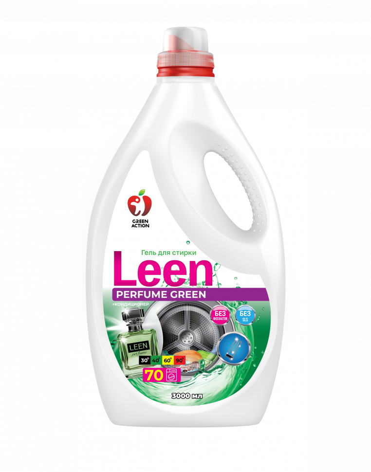 LEEN Green Perfume - концентрированный гель для стирки для эффективной стирки даже в жесткой воде. Подходит для стирки в стиральных машинах и для ручной стирки. Защищает стиральную машину от накипи. Имеет высокую концентрацию, что обуславливает его экономный расход.