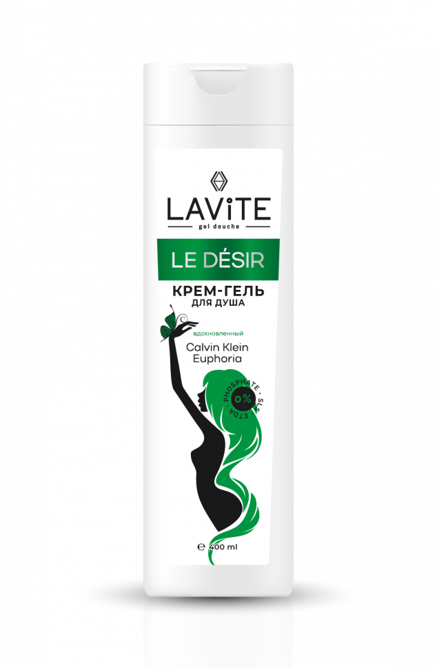 LAVITE - крем-гель для душа для ежедневного ухода за всеми типами кожи. Обогащен увлажняющим комплексом эфирных масел мандарина, гвоздики, эвгенольного базилика, колюрии, цитронеллы и иланг-иланга. Ph нейтральный. Имеет нежный тонкий аромат вдохновленный Calvin Klein Euphoria